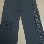 Erksate geomeetriliste mustritega pükste külgedel toovad need püksid teie igapäevasesse välimusse ainulaadset kultuurienergiat. Tugevate mustrite ja ühevärvilise kanga kontrast loob tõelise kunstilise avalduse, mis peegeldab teie isiksust. Iga samm muutub rafineeritud stiili ja kultuuri sulandumiseks, ideaalne, et teid märkama panna ilma sõnu lausumata.
