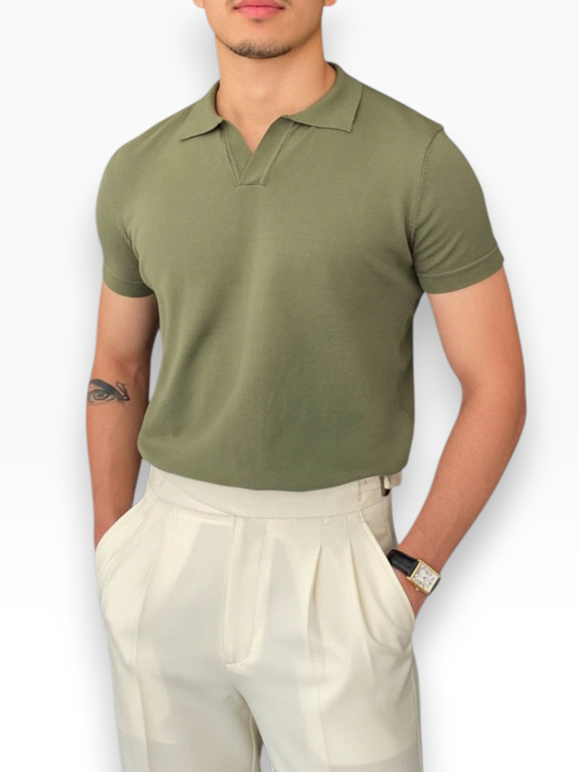 See V-kaelusega polo väljendab täiuslikku tasakaalu mugavuse ja tagasihoidliku rafineerituse vahel. Kaugeltki mitte tavaline ese – see on loodud rõhutama elegantsi ja karismat läbi lihtsa, autentse ja ajatu disaini. Mõeldud kaasaegsele klassikalise stiiliga mehele, kohandub see loomulikult nii rafineeritud vabaaja olukordadesse kui ka hoolikamatesse kooslustesse, väljendades kohalolu pingutuseta. Põhiese, mis tõstab igapäevaelu taset loomulikkuse ja hea maitsega.