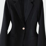 Ajatu elegantse lõikega jakk, mis naiselikkust ja stiili. Üksainus nööp ees lisab peenust, kui selgejoonelised taskud rõhutavad minimalistlikku iseloomu. Ideaalne nii validaks esinemiseks kui ka elegantne õhtuseks väljasõiduks.