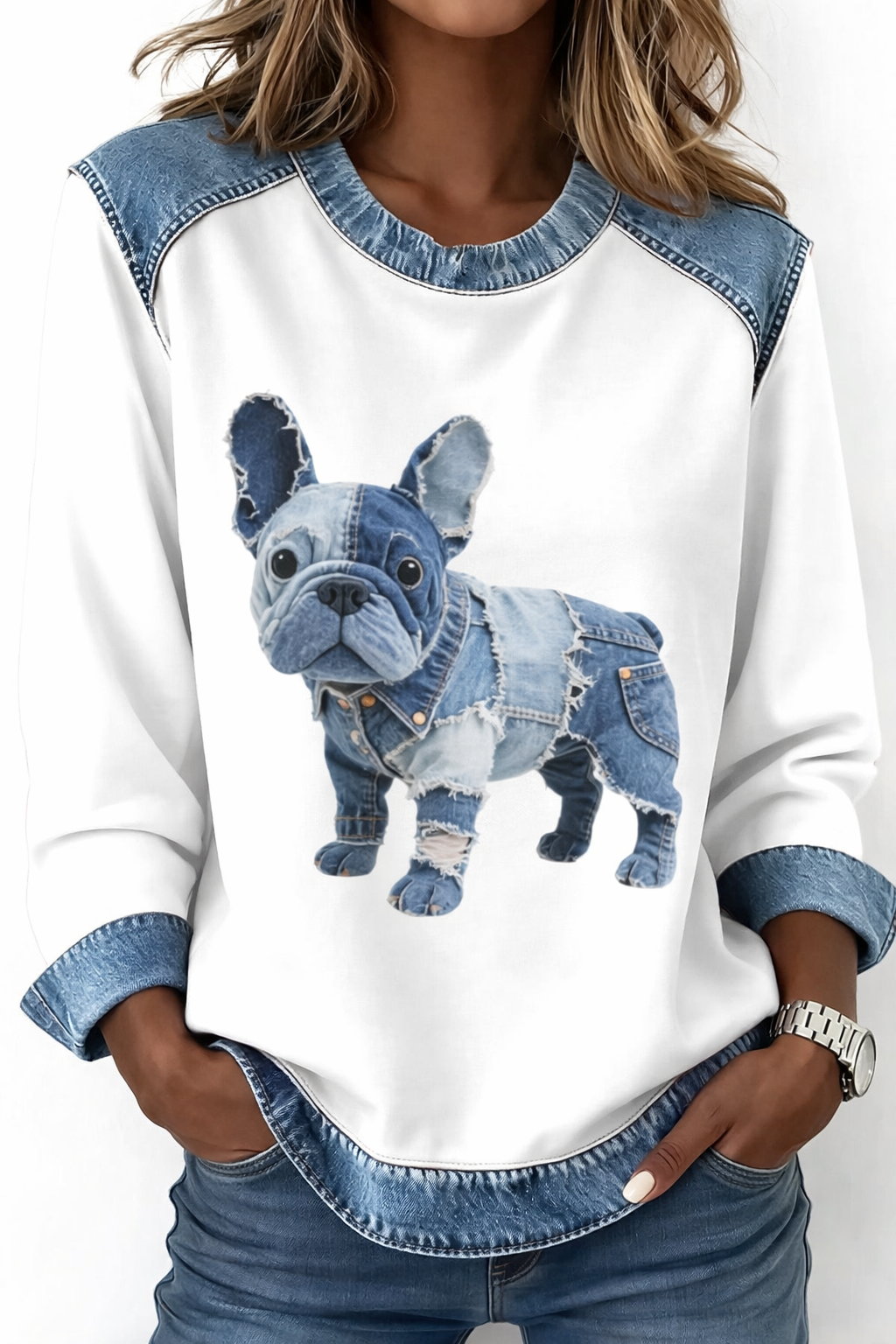 Silmapaistev koeramotiiv lisab rõivale karakterit ja mängulist enesekindlust, samas kui puhas ja tasakaalustatud lõige hoiab üldmulje kaasaegse ja kantavana.