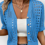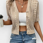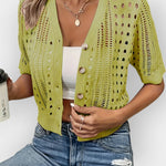 Veronika suvine kardigan on ideaalne kerge kiht üleminekuhooaegadeks või jahedateks suveõhtuteks. Pehme tekstuuri ja lühikeste varrukatega lisab see igale riietusele pingutuseta võlu ja mugavust. Mitmekülgne ja oluline garderoobi alus.