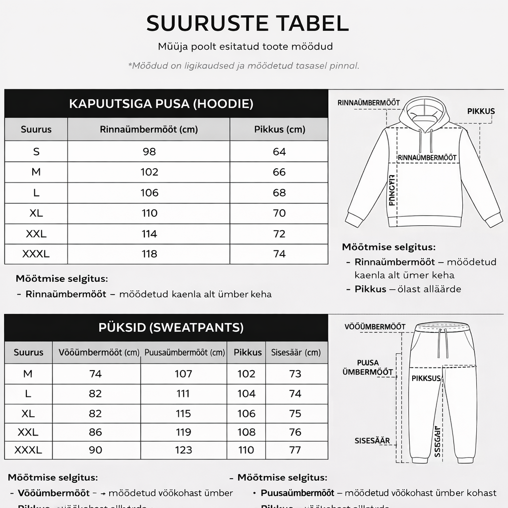 Ja muretsemiseks pole põhjust — pakume lihtsat ja mugavat vahetust kõikidele tellimustele. Kui suurus siiski ei sobi, aitab meie klienditugi sul leida just sinu kehale kõige paremini sobiva variandi.