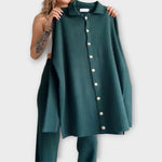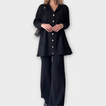 Elegantne komplekt, mis kohandub kergesti iga stiiliga, andes igale välimusele peenuse. Selle mitmekülgne disain sobib ideaalselt igaks sündmuseks, nii vabaaja kui ka igapäevaseks, ning ajatuks elegantsiks. Pehme tekstuur tagab mugavuse, samas kui pingevaba ja minimalistlik esteetika õhkub elegantsi.