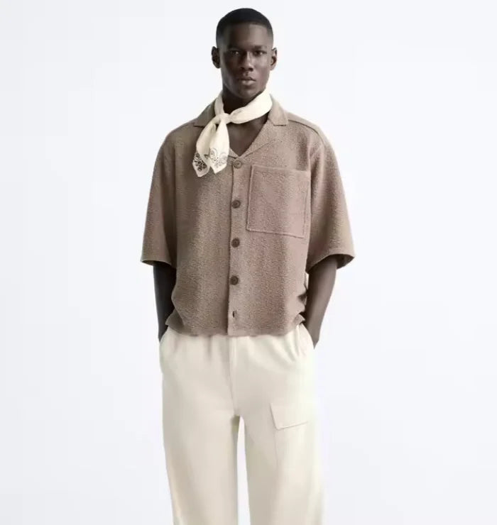 Эта рубашка выделяется своей спокойной эстетикой и сочетанием непринужденности и изысканности. Струящийся силуэт и утонченный дизайн отсылают к классическому стилю, где комфорт и стиль идут рука об руку. Созданная для теплых дней, она легко передает уверенность и хороший вкус, идеально подходит для тех, кто ценит сдержанную и вневременную элегантность.