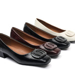 Need klassikalised kontsad on varustatud madala ruudu kontsaga ja ümarate ruudukujuliste varvastega, et pakkuda rohkem ruumi ja tasakaalu. Tekstureeritud viimistlus lisab peent detaili, samas kui kuldne pandla aksessuaar toob esile viimistletud puudutuse. Pehme polsterdatud sisetald ja struktureeritud kuju pakuvad nii elegantsi kui ka päevast mugavust.